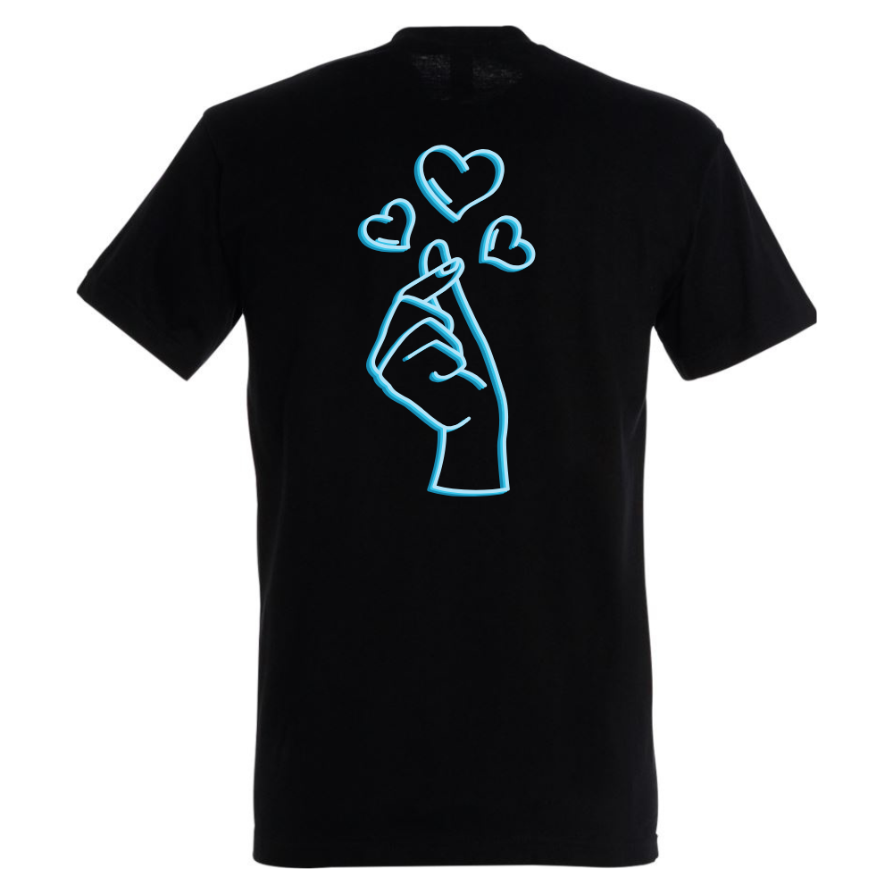 T-Shirt schwarz Motiv: K-Pop Fingerherz blau